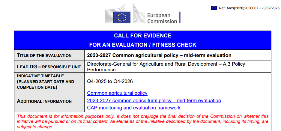 The first is part of the feedback process for the mid-term review of the CAP for the 2023-2027 cycle. The aim is to assess whether the new CAP delivery model and the measures in the CAP Strategic Plans (CSPs) are on track to meet the specific objectives and performance indicators of the CAP for the period 2023-2025.