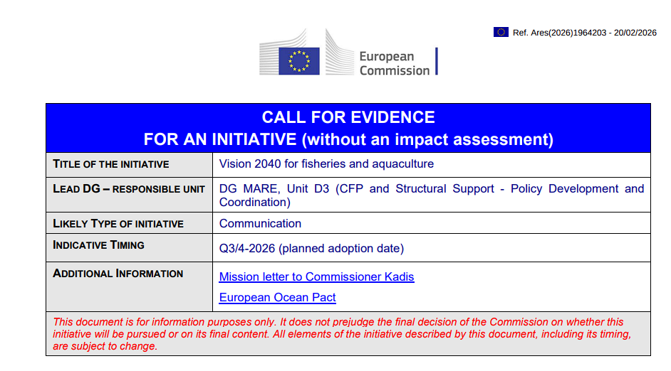 The 2040 vision will set out a comprehensive policy framework for a competitive, resilient, and sustainable fisheries and aquaculture sector, including the processing industry, in line with the European Ocean Pact. The initiative will: